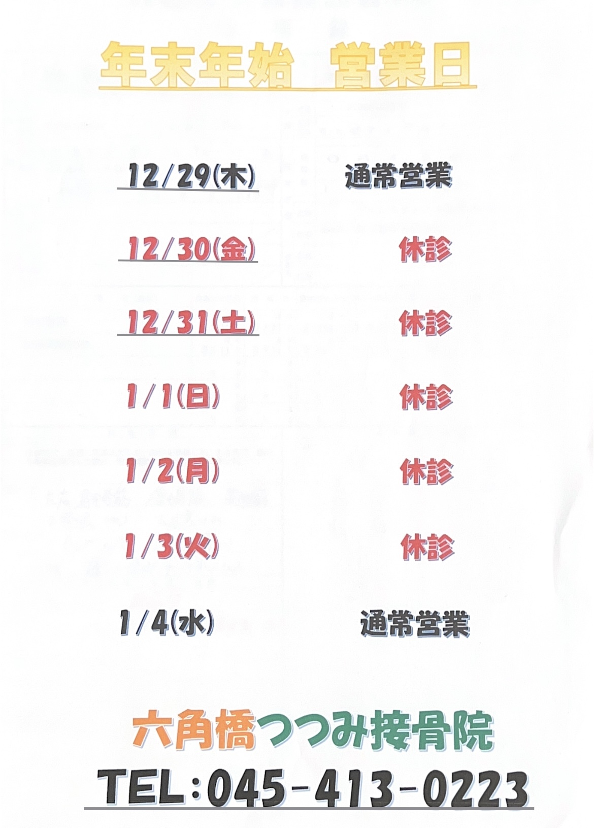 年末年始のお知らせ!